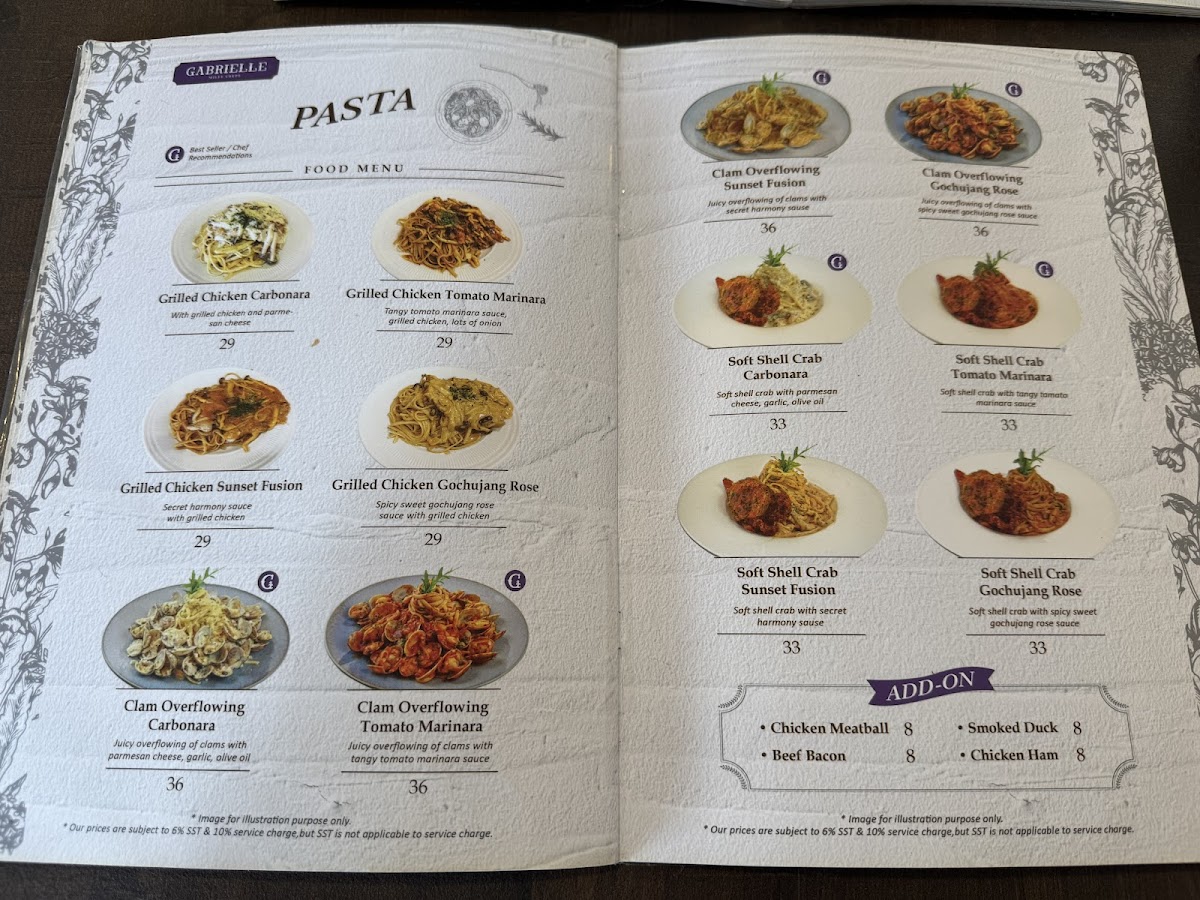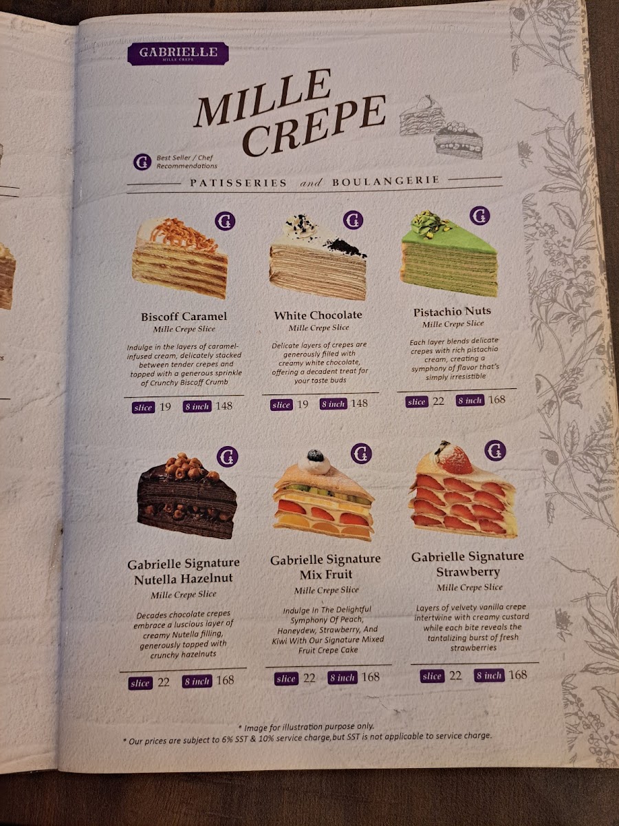 Welcome to Gabrielle Mille Crepe Italy, a charming cafe nestled in Bangi, Malaysia. This delightful spot specializes in exquisite mille crepes, offering a range of tantalizing options like the White Chocolate Mille Crepe and the indulgent Double Chocolate Chips Mille Crepe, each crafted with delicate layers and rich flavors. Beyond crepes, the menu features savory dishes like Smoked Duck Carbonara and Grilled Chicken Tomato Marinara, blending creativity with culinary excellence.